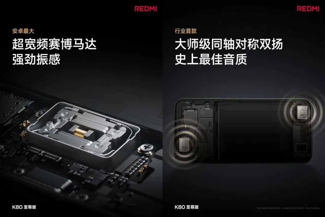 先說說紅米K80至尊版,這款手機定位是性能機,硬件配置在同價位里絕對能打,但K80至尊版真正拉開差距的地方,在于它的周邊配置,尤其是那顆0916X超大尺寸馬達和雙1115同軸對稱式揚聲器,這倆簡直是“質感擔當”!