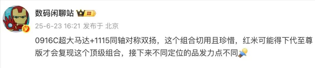 根據站哥的爆料和一些小米高管的互動信息,紅米K90大概率不會用上0916C馬達和雙1115揚聲器,這套配置可能要等到下一代至尊版才會復現。