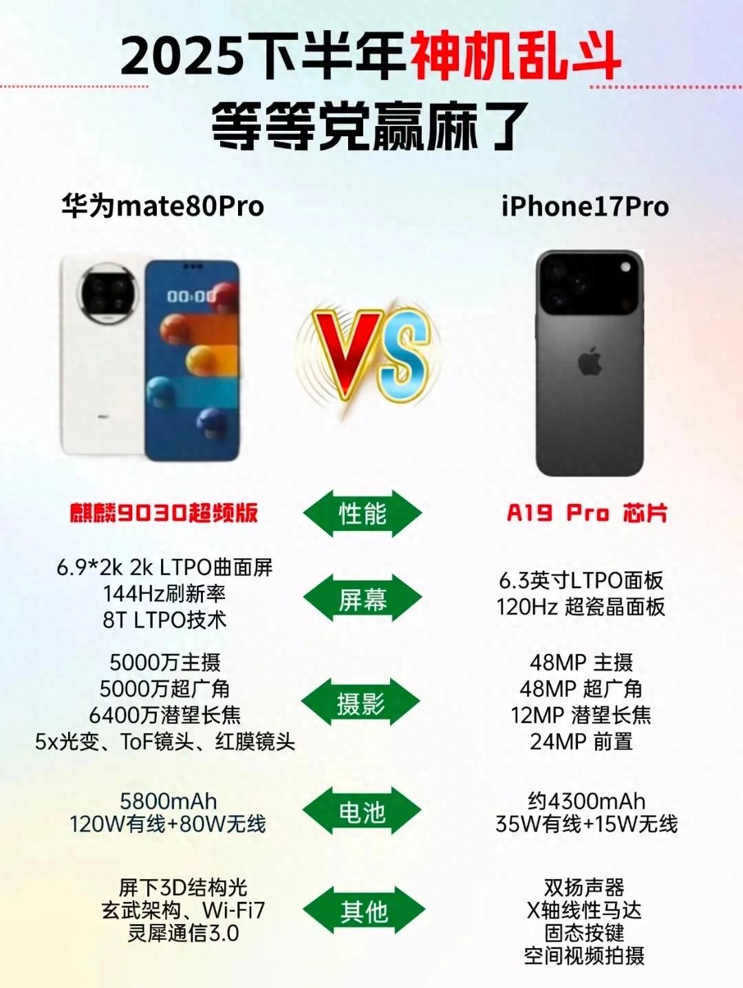 - 性能:麒麟9030超頻版,自研芯硬剛蘋果A19 Pro