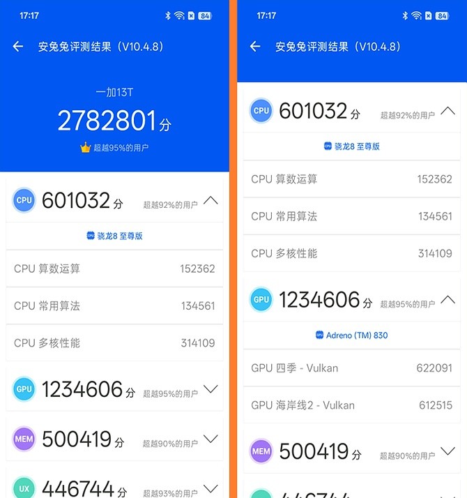 驍龍8E加16GB內存組合,安兔兔跑分236萬,風馳游戲內核優化到位。