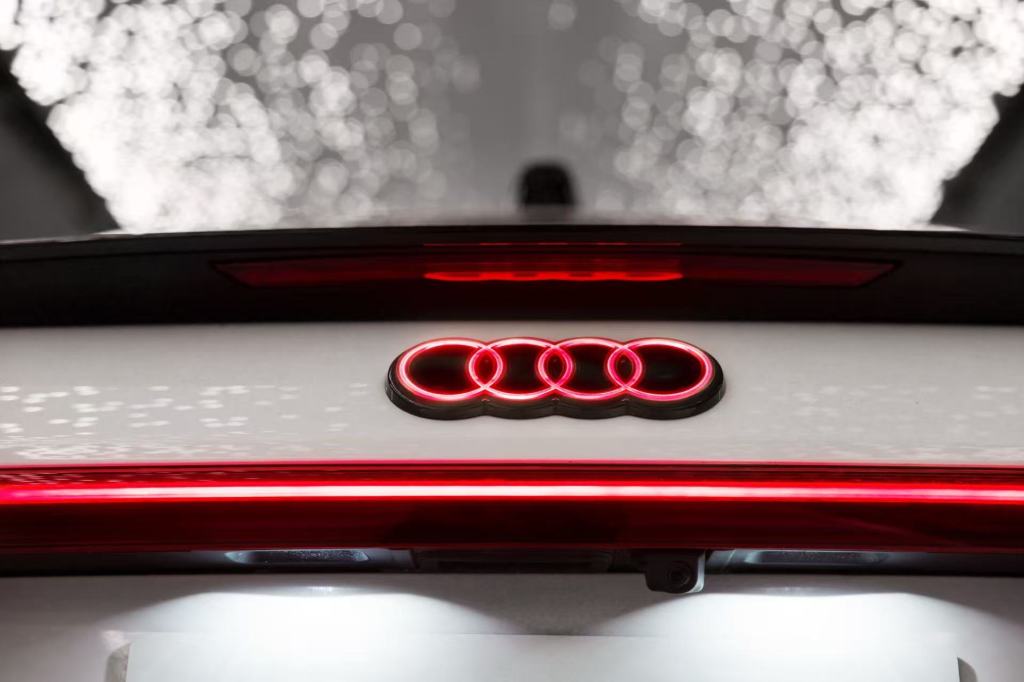 燈光是奧迪永不褪色的名片。Q6L e-tron的主動數字光簽名賦予了前后燈組各8種可選的“表情”,讓車輛在夜間也能展現個性。新一代數字OLED尾燈,6個發光面板、360個獨立發光單元,不僅能展示酷炫的動畫效果,更能實現泊車、領航甚至緊急停車提醒等場景化功能。車尾的幻影光環徽標,作為中國專屬設計,在黑暗中依然具備品牌辨識度。