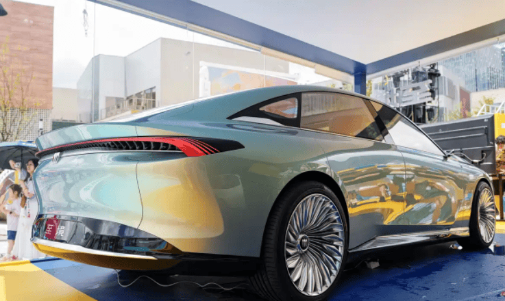 外觀設計上,別克至境家族先導概念車采用了 “光影流動” 的設計理念,整車線條流暢而富有張力。前臉摒棄了傳統的格柵設計,取而代之的是貫穿式的 LED 燈帶,燈帶造型如同舒展的羽翼,在不同角度下能折射出豐富的光影效果,極具辨識度。車身側面的線條從車頭一直延伸至車尾,勾勒出優雅的溜背造型,搭配大尺寸的空氣動力學輪轂,不僅提升了車輛的運動感,還能有效降低風阻。車窗采用了無邊框設計,與懸浮式車頂相得益彰,讓整車看起來更加輕盈靈動。車尾的設計同樣簡潔大氣,貫穿式的尾燈與前臉遙相呼應,點亮時宛如一道流光,十分吸睛。