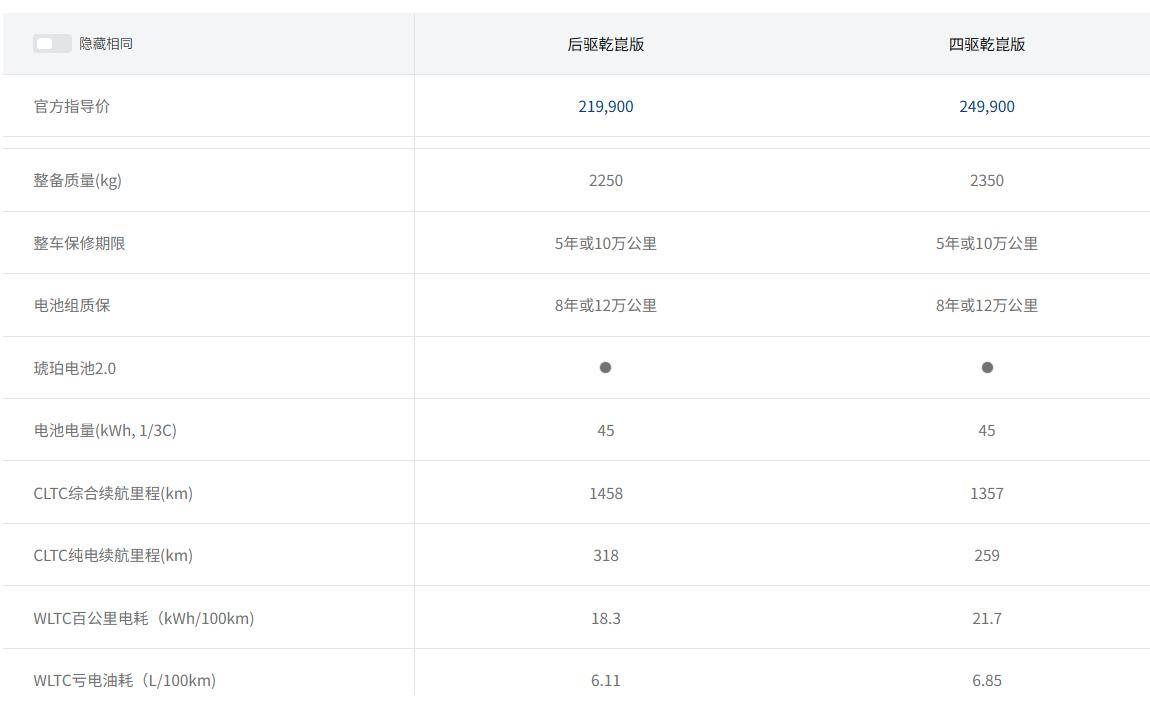 動(dòng)力電池層面,嵐圖FREE+采用了江蘇時(shí)代的磷酸鐵鋰電池,WLTC續(xù)航225公里,45度電池,在目前這個(gè)價(jià)位的增程SUV當(dāng)中,這個(gè)續(xù)航加上這個(gè)價(jià)格,的確是性價(jià)比不錯(cuò)的一臺(tái)車。后驅(qū)車型的電機(jī)型號(hào)為TZ225XYH02,是的同款。