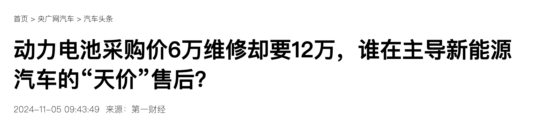 但是都說(shuō)了是“正常情況”,還有很多情況是不正常的。比如車輛的底盤(pán)電池包被剮蹭,出現(xiàn)漏液、冒煙等情況,而且保險(xiǎn)公司還不賠付的情況下,那就要自己更換電池了。這一點(diǎn)大家都知道,更換電池的費(fèi)用很高,很多動(dòng)力電池整體更換,價(jià)格都在10萬(wàn)以上,基本上老老實(shí)實(shí)充電省下來(lái)的錢,有可能一次都還回去了,這種消息一多,誰(shuí)還敢冒險(xiǎn)買電動(dòng)車,畢竟誰(shuí)也不能保證,開(kāi)車過(guò)程中,一定不出“非正常”情況。