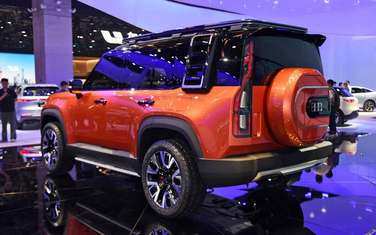 不信你看這2張官圖,無(wú)論是車頭45度給人的神韻也好,還是車尾45度所帶給人的那種氣場(chǎng),這簡(jiǎn)直就是用尺子一尺一尺照著路虎衛(wèi)士給量出來(lái)的。