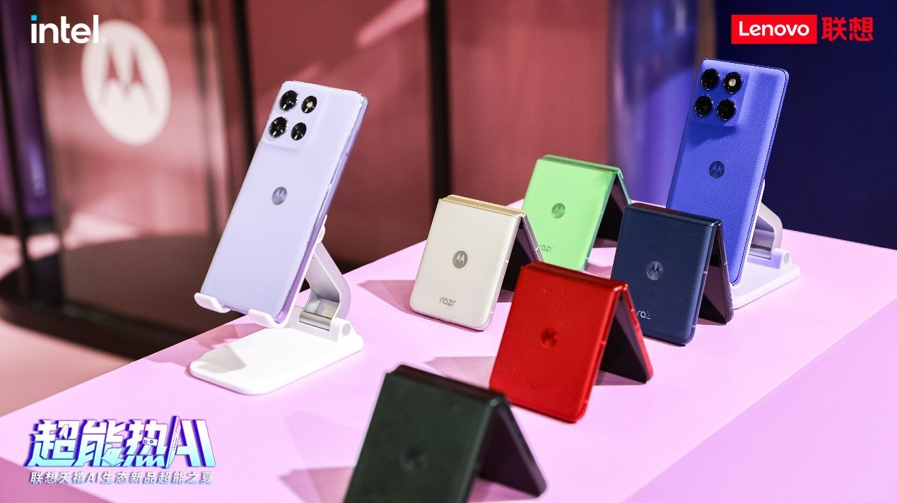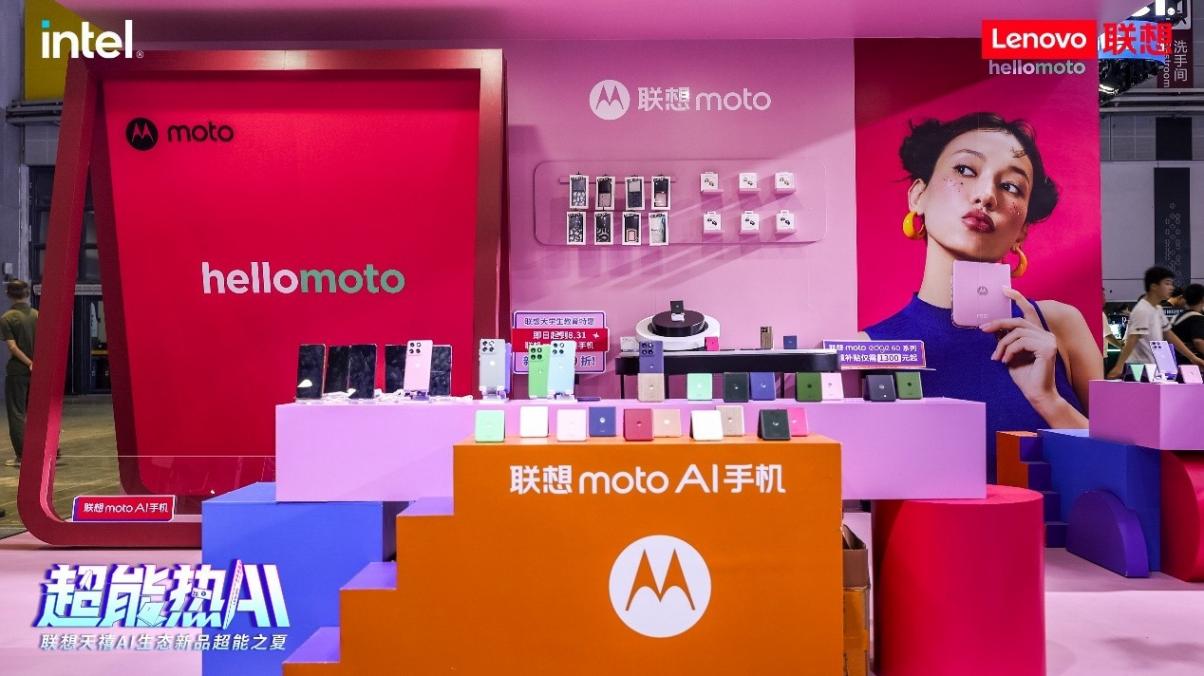 超能時尚區-聯想moto孟菲斯潮牌長廊是整個展區最時尚的區域,這里展示了包括聯想moto razr 60 Ultra AI元啟、聯想moto razr 60 Pro AI元啟、聯想moto razr 60、聯想moto edge 60 Pro AI元啟、聯想moto edge 60、聯想moto edge 60s以及聯想moto g100 Pro在內的多款智能手機。聯想是手機行業唯一與Pantone潘通達成全球合作的品牌,聯想也將潘通高定色系引入AI手機,讓現場觀眾一睹聯想moto家族領先的科技時尚風貌。特別是聯想剛剛揭曉的三款新配色,包括聯想moto razr 60“星際隕黑”、聯想moto edge 60s“夏日烏梅”以及聯想moto edge 60 Pro“椴影胡桃”,更是驚艷全場。