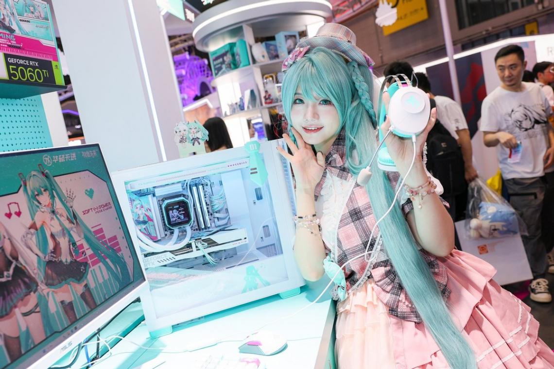 作為當(dāng)下熱門(mén)二次元IP,3臺(tái)華碩與初音未來(lái)聯(lián)名主機(jī)成為ROG玩+樂(lè)園的熱門(mén)打卡地。其中一臺(tái)RO姬×初音未來(lái)全家桶以ROG X870E RO姬×初音未來(lái)版主板為核心,搭配AMD銳龍7 9800X3D處理器、ROG夜神RTX5080 RO姬×初音未來(lái)版顯卡、ROG雷神3代1200W RO姬×初音未來(lái)版電源、ROG 龍王4代360 RO姬×初音未來(lái)版一體式水冷和ROG太陽(yáng)神2代RO姬×初音未來(lái)版機(jī)箱等配件打造而成,全線(xiàn)產(chǎn)品進(jìn)行軟硬件深度定制,兼顧高顏值與強(qiáng)悍性能,為玩家打造沉浸式二次元電競(jìng)體驗(yàn),擦出絢爛的火花!