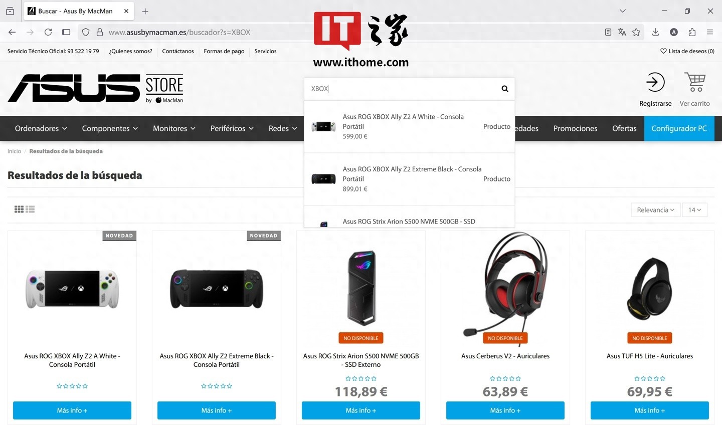 7 月 14 日消息,ASUS Store by MacMan 是一家位于西班牙巴塞羅那的華碩官方合作專營店。該商店的網(wǎng)站已上線 ROG XBOX Ally / ROG XBOX Ally X 這兩款合作掌機的產(chǎn)品頁面。