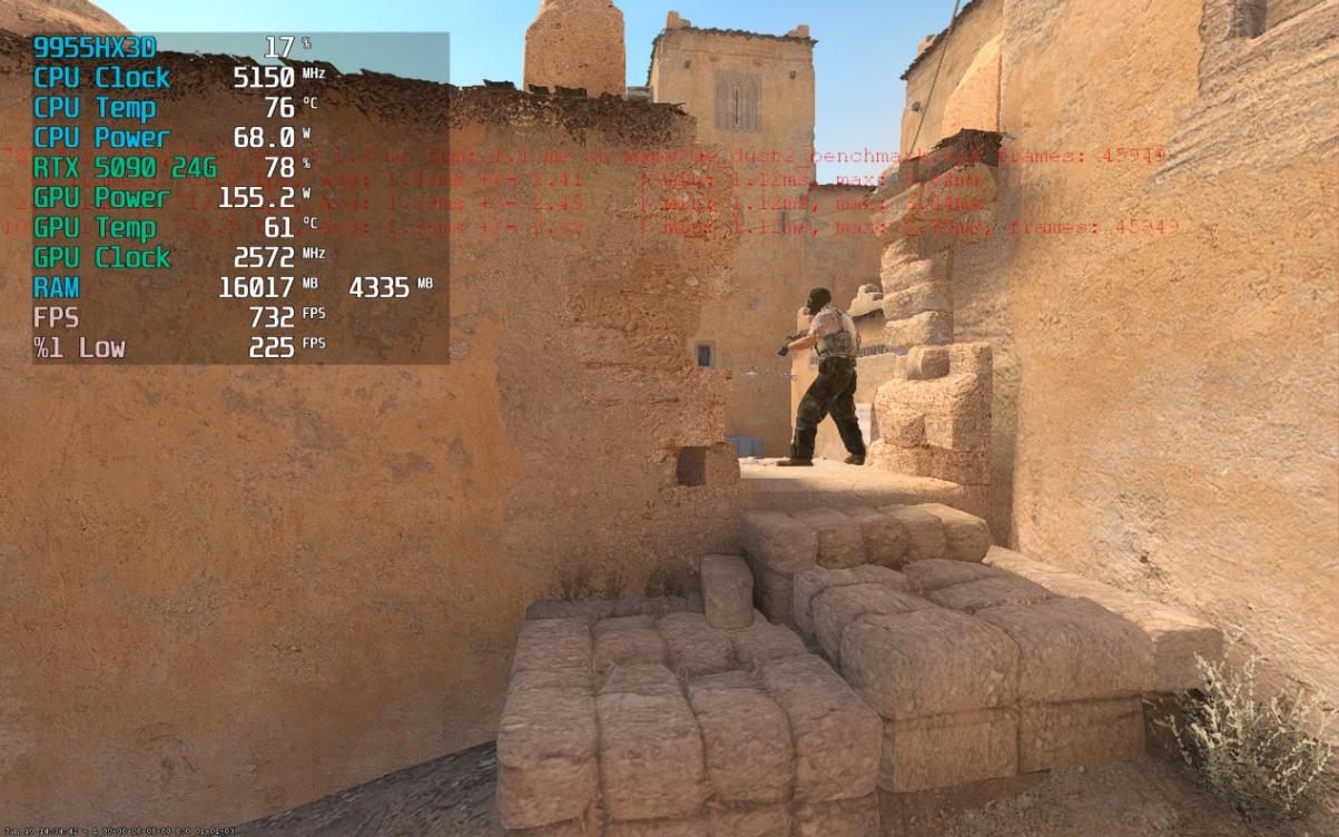 在《CS2》的創意工坊測試中,搭載AMD銳龍9 9955HX3D處理器的機械革命蒼龍16 Ultra,可以跑出平均每秒732幀的成績,小小展現出第二代3D V-Cache技術帶來的變化。