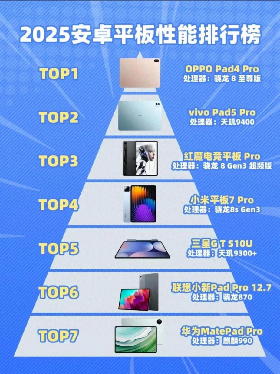 2025安卓平板性能金字塔曝光!7大機型混戰(zhàn),游戲黨、辦公族、性價比控狂喜