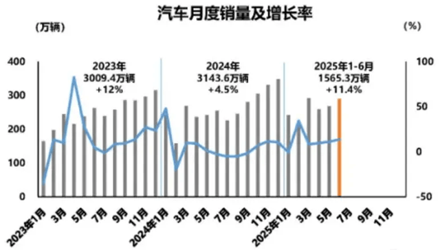 2025上半年中國車市成績單出爐,據中汽協數據,今年1-6月中國汽車產銷雙雙突破1560萬輛,同比分別上漲12.5%和11.4%。其中,乘用車產銷超1350萬輛,同比增長約13%。