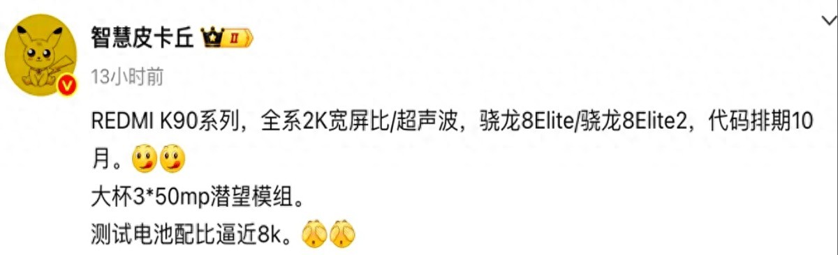 紅米K90系列10月要來了,全系大電池8000mAh、驍龍8 Elite2處理器、2K直屏加潛望長焦,這次直接拉高中端機門檻。