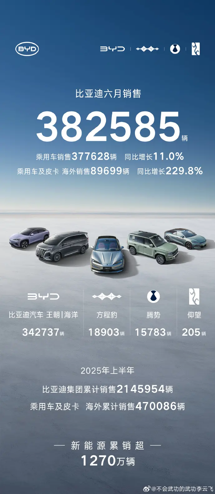 比亞迪破百萬大家可能覺得沒啥感覺,已經(jīng)麻木了,但咱們要知道,這可是在比亞迪上半年基本沒發(fā)什么大熱的車型,基本僅靠年初的 “全民智駕” 達成的成績。
