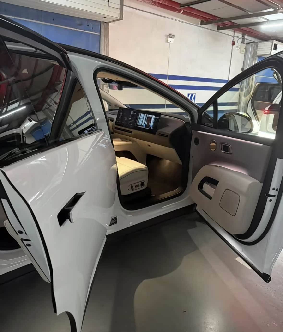 從最新的內(nèi)飾諜照來看,新車延續(xù)理想家族式的內(nèi)飾布局,但是細(xì)節(jié)有很大不同。首先新車中控臺上方加入了環(huán)形的氛圍燈,空調(diào)出風(fēng)口的樣式也經(jīng)過了優(yōu)化。車內(nèi)依然是主駕屏+副駕屏的布局,車內(nèi)沒有儀表屏,預(yù)計仍然是方向盤屏+抬頭顯示。新車車門也加入了氛圍燈,車門裝飾造型優(yōu)化。