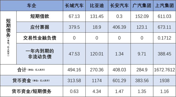 此外,從償債能力的數據來看,按照貨幣資金/短期債務(短期借款+應付票據+交易性金融負債+一年內到期的非流動負債)的比值進行計算,長城汽車僅為0.63的指標,在A股市場主要車企當中處于相對較低的水平。該指標實際上可以反映公司短期債務的償債能力,目前比亞迪、長安汽車、廣汽集團、上汽集團等車企均取得大于1的指標,在手現金基本能覆蓋短期債務。通過對比可以看出,長城汽車短期債務的償債壓力較高。