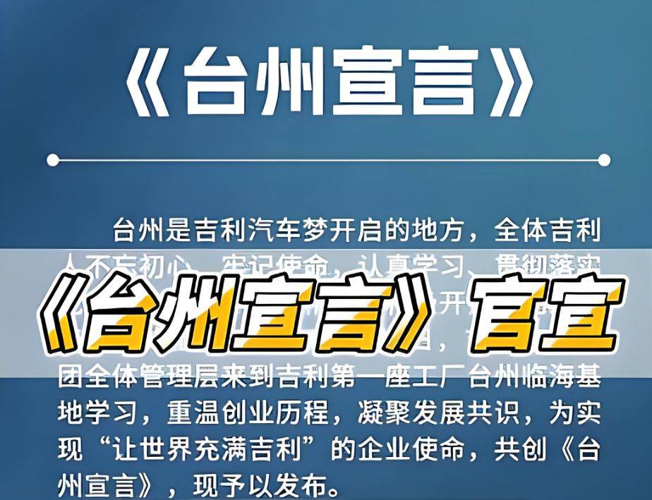 2024年9月20日,吉利發布《臺州宣言》。