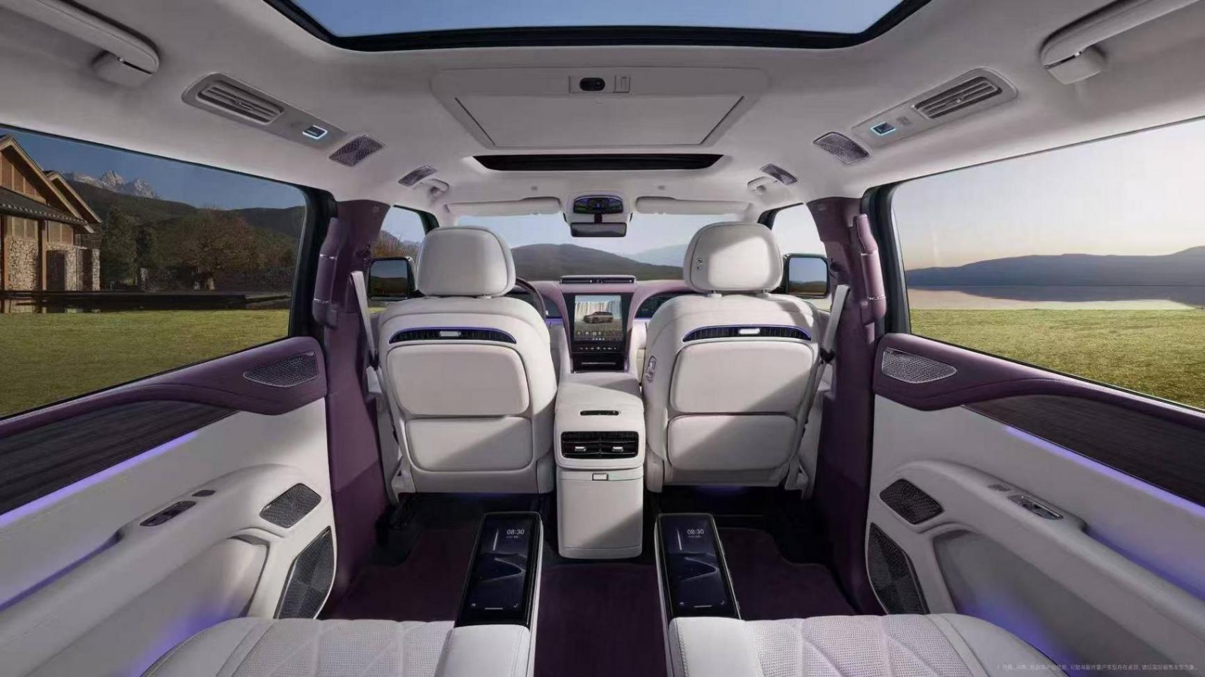 座椅方面,U8L采用2-2-2的六座布局,三排座椅均采用軟性皮質(zhì)包覆,并且新車二排還采用獨(dú)立座椅,整體的座艙舒適體驗(yàn)進(jìn)一步提升。值得一提的是,新車還配備了一個(gè)大尺寸的后排吸頂屏,車載冰箱、后排座椅扶手液晶屏幕、多色氛圍燈等配置通通安排。