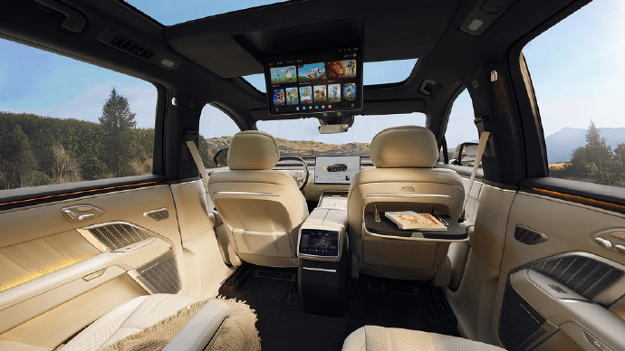 另外,新車(chē)也配備智能全電動(dòng)冰箱和后排的“大彩電”。