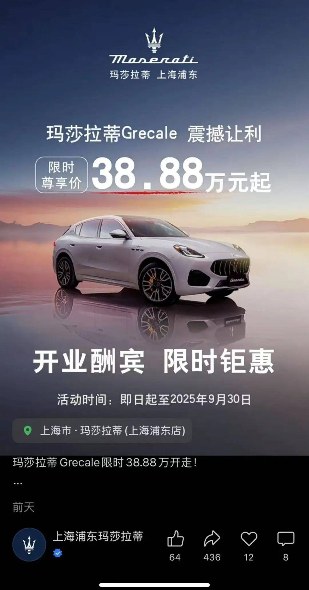 “只要活的夠久,也能等到30多萬的瑪莎拉蒂”,網(wǎng)友的一句調(diào)侃,將超豪華汽車品牌如今的境遇襯托得更加尷尬。