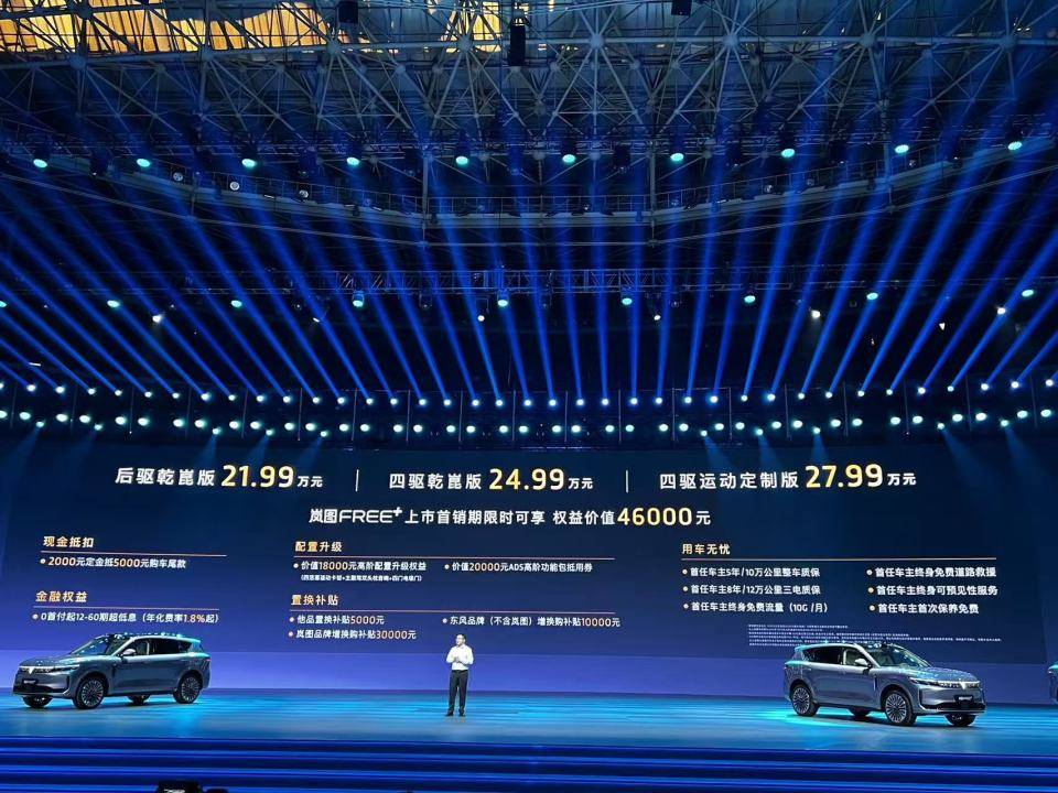日前,嵐圖FREE+正式上市,售價21.99-27.99萬元。僅15分大定就破萬,達到了11583臺,成績相當(dāng)喜人。新車一共推出三個版型,六種車身顏色可選,2000元定金抵扣5000元購車尾款,置換補貼5000元(東風(fēng)系增換購1萬元,嵐圖增換購3萬元)。