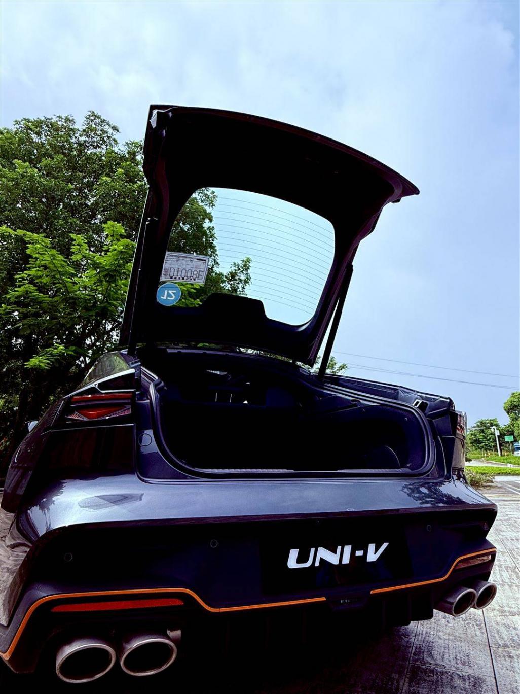 作為同級唯一掀背運動轎跑,第三代UNI-V全系標配電動掀背門,十分吸睛。大開口設計0.91m2,輕松容納34寸行李箱。裝載高度為705mm,相比主流三箱轎車500mm-600mm的裝載高度優勢明顯;配備高度記憶、智能防夾及隱藏式后備箱按鍵,按兩下半開、按一下全開,場景自由選擇。
