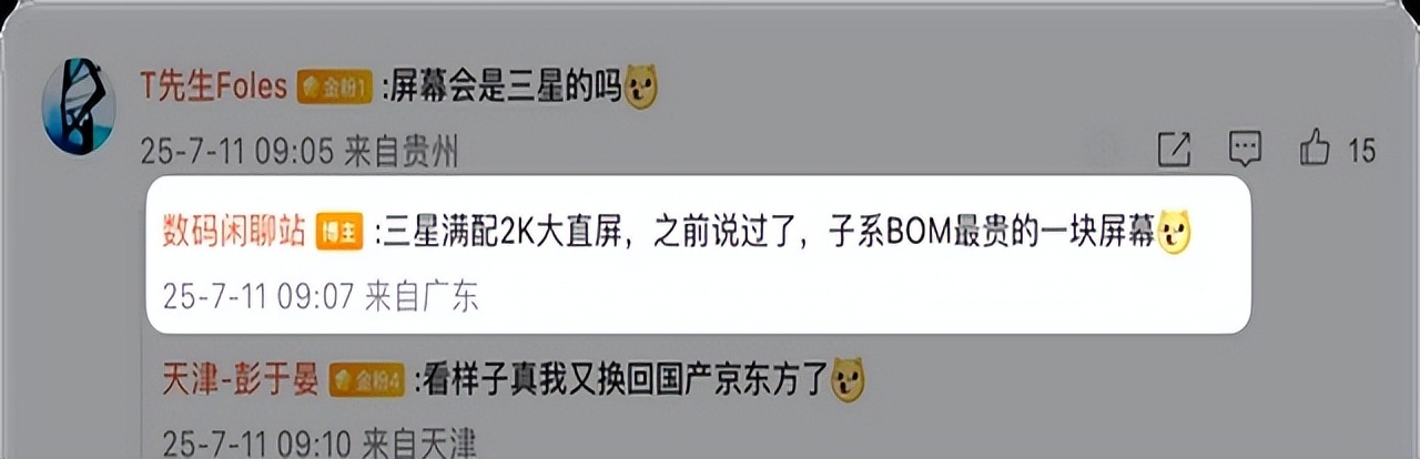iQOO 15系列那塊6.85英寸2K三星直屏是真下血本了。