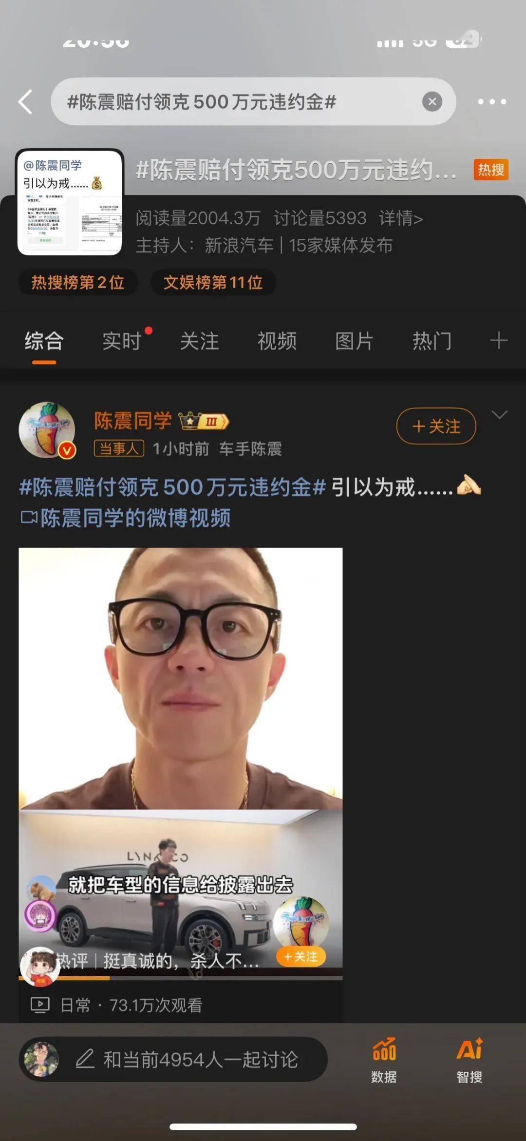 彼時,針對這起泄露事件陳震表示,已經(jīng)將500萬打給了領(lǐng)克公司,引以為戒。陳震的這起車型泄露事件算今年較為轟動的事件,比較賠償金額上百萬。