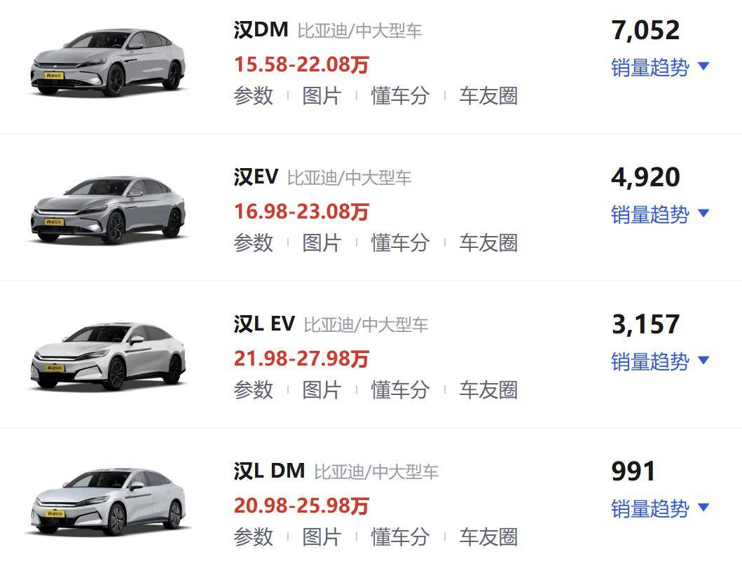 6月比亞迪漢銷量為11972輛,排名榜單第五名。其中,6月漢DM為7052輛;漢EV為4920輛。比亞迪漢L銷量為4148輛,排名榜單第十一名。其中,漢L DM為3157輛;漢L EV為991輛。截至上半年,比亞迪漢和漢L年內累計銷量分別為73485輛和12458輛,其中,漢L于4月9日上市,外觀造型整體傳承了漢的經典設計,尺寸方面長寬高分別為5050/1960/1505mm,軸距為2970mm,相比于漢車型,漢L尺寸均有所增加。