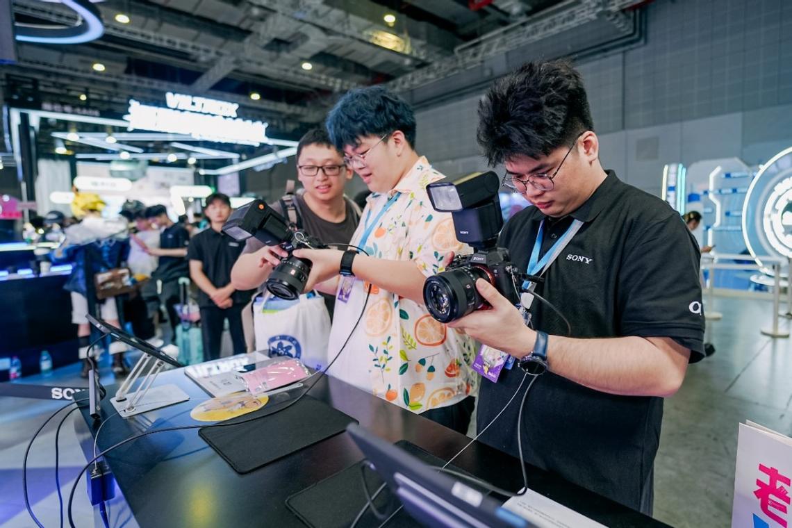 索尼著力打造的“破次元人像拍攝體驗區”以其獨特的科技美學成為全場焦點,吸引了眾多攝影愛好者駐足。展區以“破次元”為設計理念,將現實拍攝場景與虛擬動漫元素巧妙融合,為參觀者營造出一個沉浸式的創作空間。在這里,攝影愛好者們可以零距離體驗索尼全畫幅微單、G大師鏡頭以及專為視頻創作者設計的ZV系列相機,感受科技為影像創作帶來的無限可能。