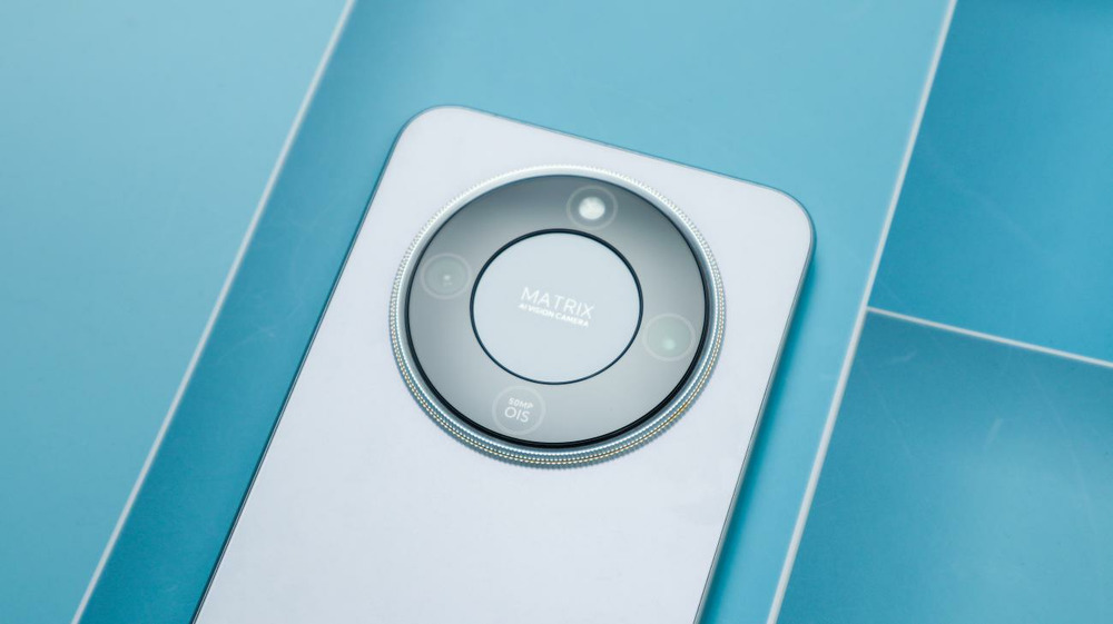 后蓋采用圓形DECO設計,相機周圍采用一圈釘紋裝飾,周邊為鏡頭和閃光燈排布,中間帶有MATRIX的字樣,后蓋為白色磨砂處理,不過上面帶有一些細節紋理裝飾,看上去也十分具備設計感。