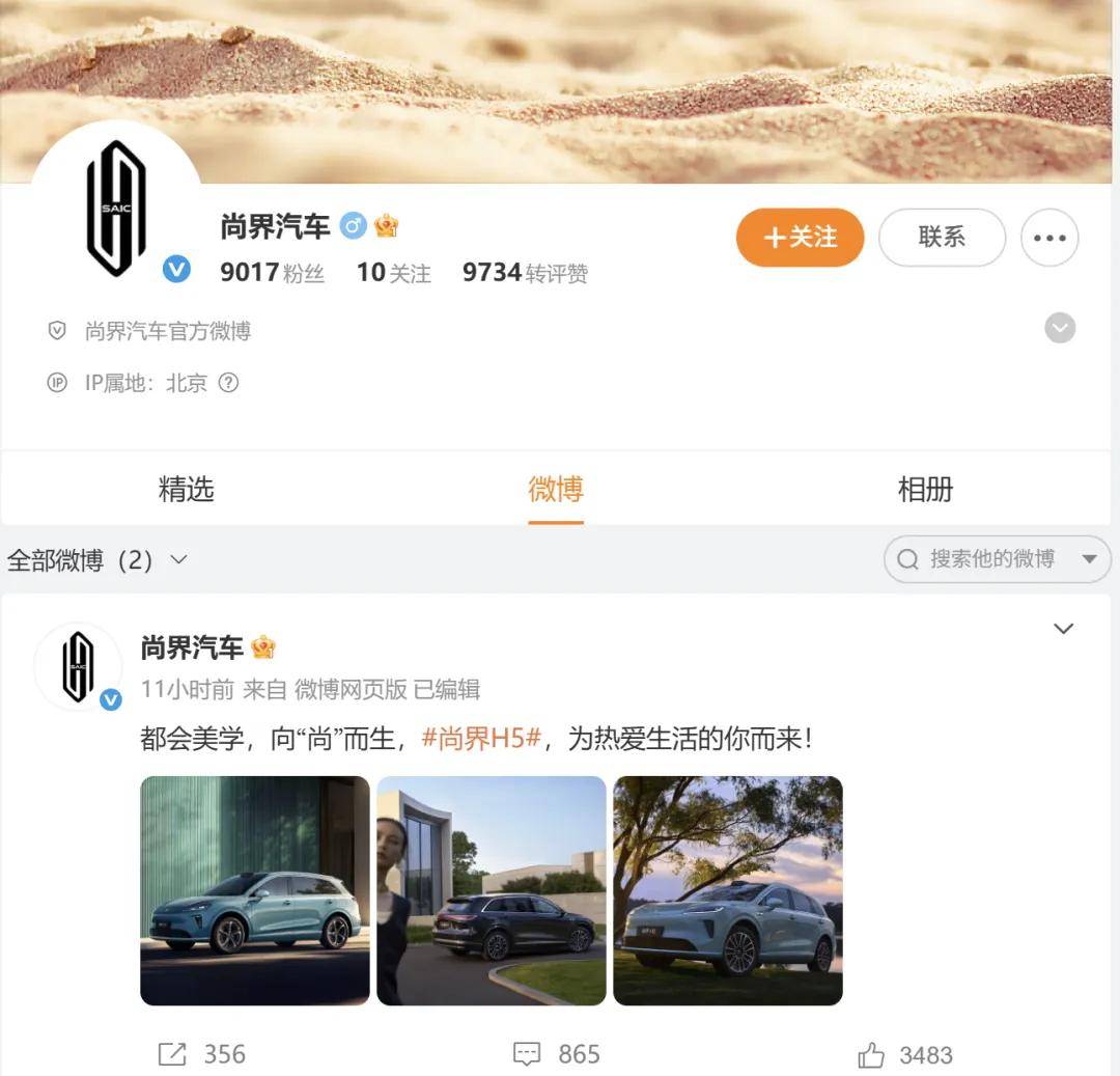 7月14日,尚界汽車首款車型——尚界H5官圖正式發布。這是繼6月30日“尚界汽車”微博正式注冊上線以來,尚界汽車發布的第二條博文。目前尚界汽車微博已認證為“尚界汽車官方微博”,IP屬地為北京。半個月時間過去,尚界汽車微博賬號粉絲數量已突破9000。