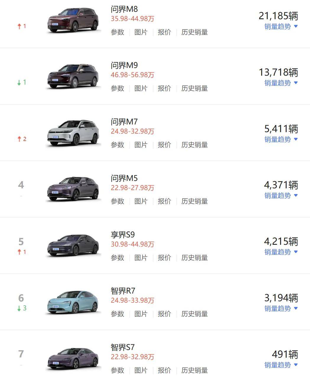 作為鴻蒙智行的第五界,在尚界汽車之前,鴻蒙智行已布局四個品牌,分別為與賽力斯合作的AITO問界、與奇瑞合作的LUXEED智界、與北汽合作的STELATO享界、與江淮合作的MAEXTRO尊界。截至目前,鴻蒙智行在售車型包括來自AITO問界的問界M5、問界M7、問界M9、問界M8,售價30-50萬級別;來自LUXEED智界的智界S7和智界R7,售價25-35萬級別;來自STELATO享界的享界S9,售價40-45萬元級別;來自MAEXTRO尊界的尊界S800,售價70-100萬級別。