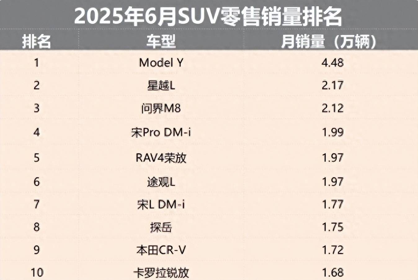 6月SUV銷量排名:燃油車反擊占據六席,師夷長技以制夷?