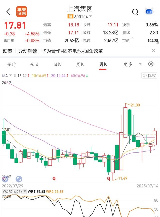 不知是否與華為合作的第一款車首次亮相,上汽集團股價應聲拉升。