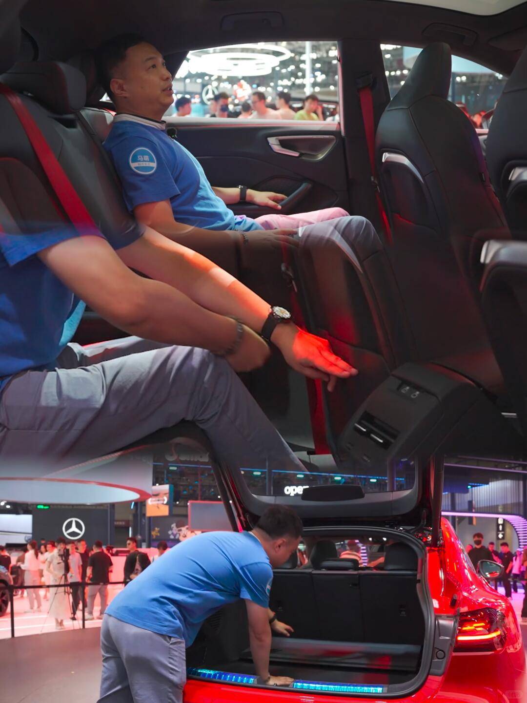 另外,我知道不少人擔(dān)心,作為一臺轎跑,它會不會不實(shí)用。我之前也有這種顧慮。所以車展時(shí)專門體驗(yàn)了一下它的后排空間。比我想像的寬裕得多,特別是腿前,超過很多的家用轎車,畢竟是有2922mm的軸距,這就是加長的好處;另外,大掀背的尾門,也讓尾廂的實(shí)用性倍增。我當(dāng)時(shí)錄了一條空間和尾廂的實(shí)測視頻,你直接搜看一下吧。
