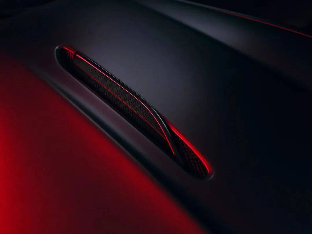 外觀設計上,新車前部采用中央布局引擎蓋導流翼片,材質為亮黑色或2x2斜紋碳纖維,兼具設計感與發動機散熱效率優化功能。
