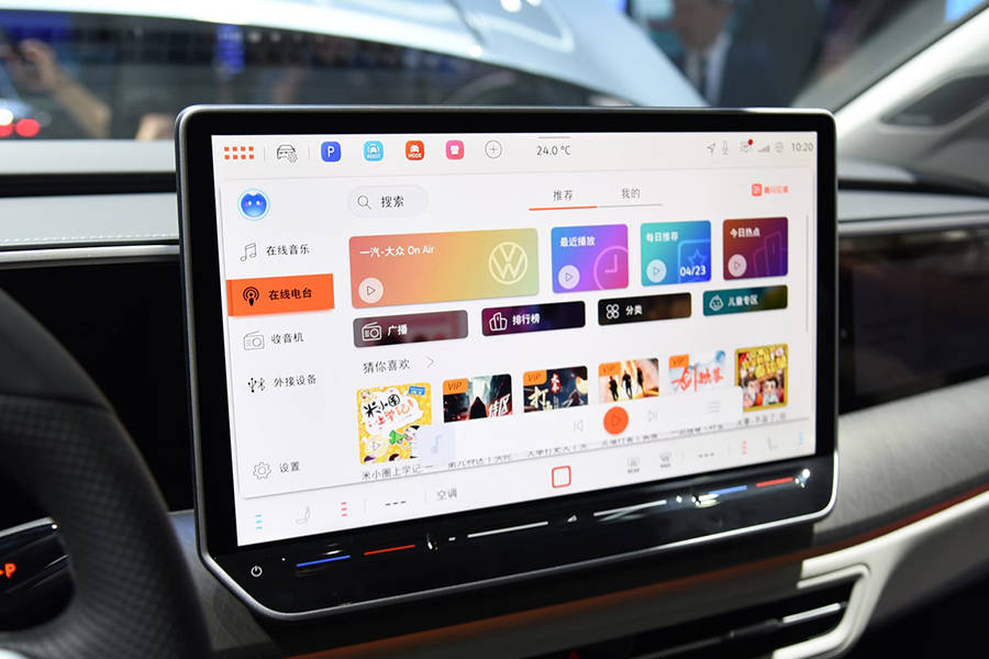 新車內飾也進行了明顯升級,中控區域偏向于駕駛員一側,方便行車過程當中的操作。中控臺換裝更大尺寸的懸浮式中控屏,副駕前方也配備電子屏幕。該車在方向盤左右兩側設計有物理按鍵,提供輔助駕駛以及方向盤加熱等配置。不僅如此,該車還采用電子懷擋式換擋機構。