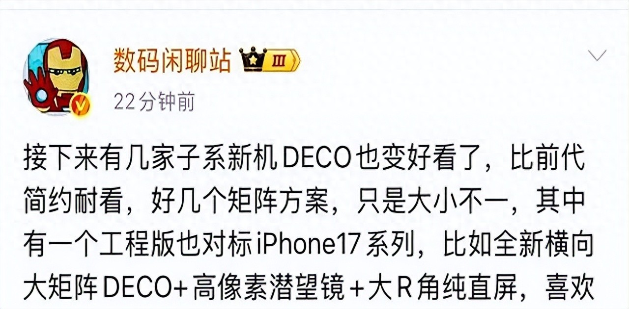 更狠的是鏡頭設計徹底推翻居中圓環(huán),要么用左上直角矩形矩陣規(guī)整排布三攝,要么直接橫貫機頂做超大矩陣,神似iPhone 17渲染圖。