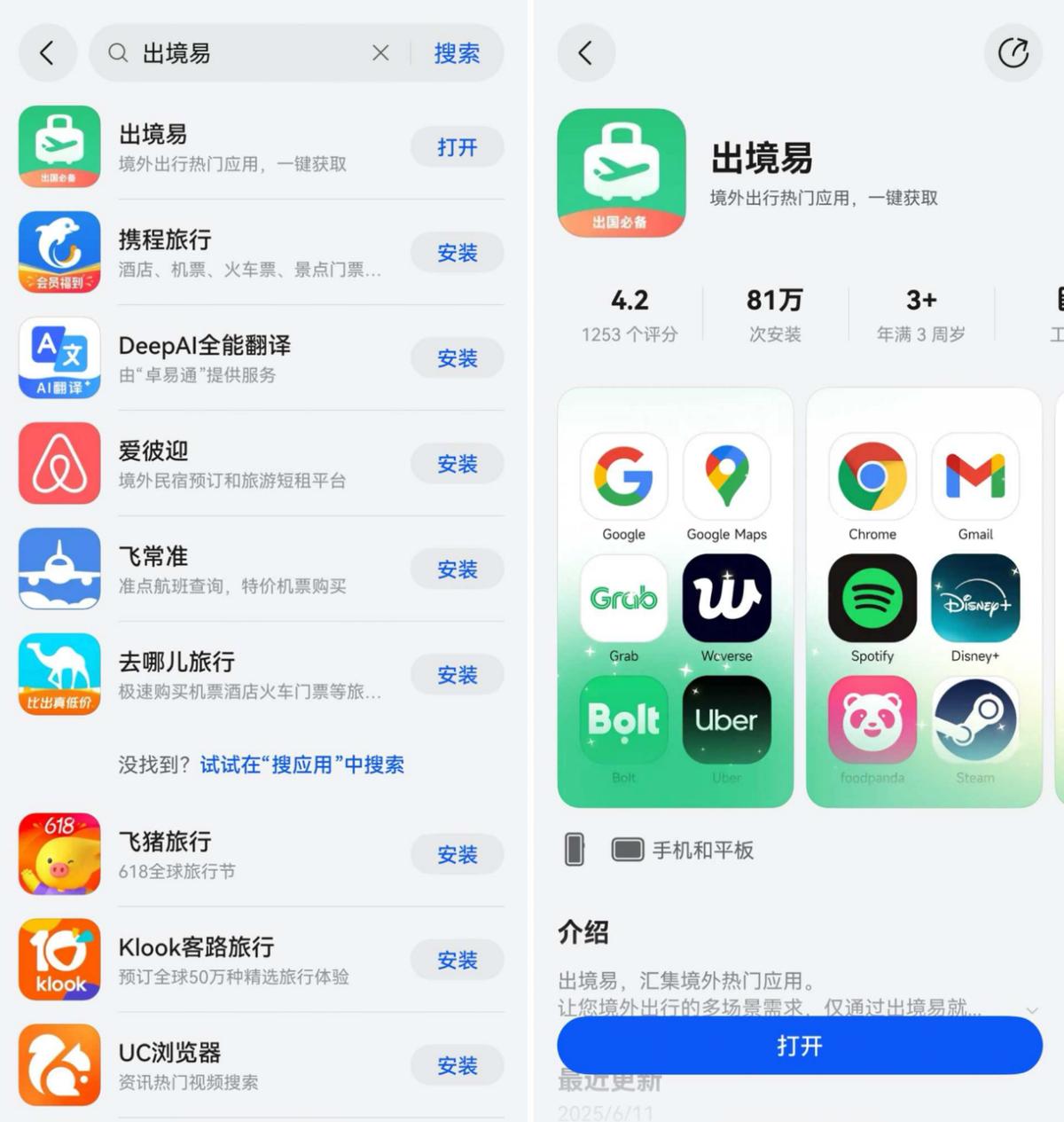 境外游就怕遭遇“App荒”——不少境外當地必備的打車、餐飲、景點等App,下載可能費時費力,而且還不一定能正常安裝使用。而有了能在華為手機系統應用市場下載到的出境易App,就可以直接一站式打包解決。