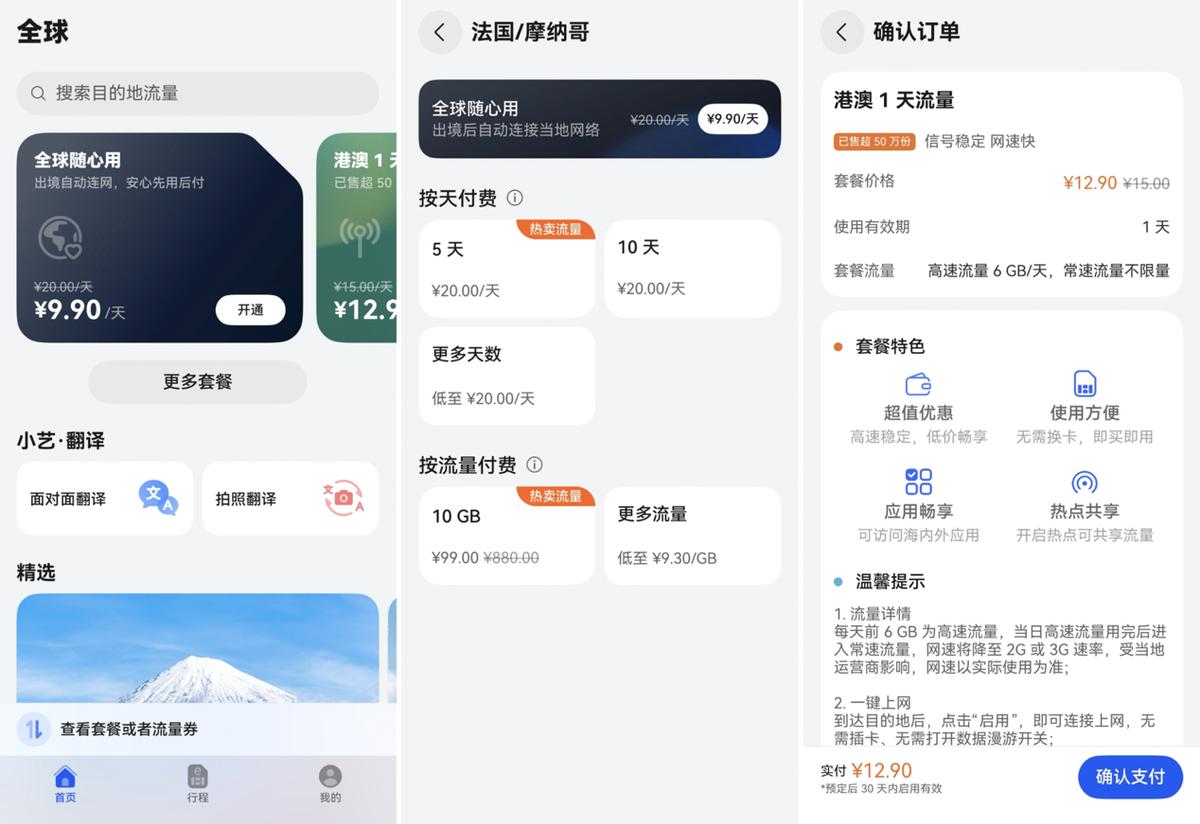 天際通的價格也相當實惠:以“全球隨心用”服務為例,覆蓋中國港澳、新馬泰、日韓、歐美等50個熱門地區,9.9元就能包天,每天含5GB高速流量,超過后還有不限量的常速流量,刷地圖、發朋友圈完全夠用。2025年6月17日到8月31日期間,在天際通App內還能領多地餐飲折扣、景點門票的暑期親子旅游優惠,相當于流量費間接“回本”了。