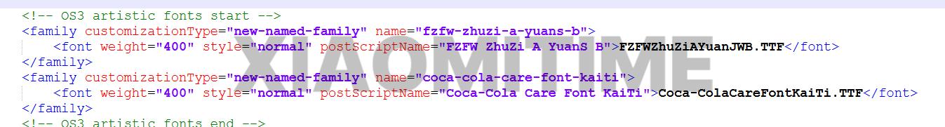 另外IT之家注意到,代碼還透露小米澎湃 OS 3 將在鎖屏樣式中新增兩種字體:FZFW ZhuZi A YuanS 和 Coca Cola Care。