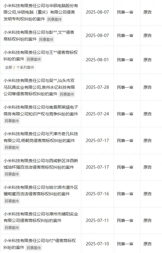 我們去企查查上簡單搜了下小米公司,發現他們關于商標侵權的案件,根本翻不完。