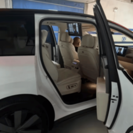 再看內飾,諜照中的理想i8采用了簡潔且富有科技感的布局。中控臺依然延續家族式設計,由主駕屏、副駕屏組成的雙屏布局十分吸睛,搭配方向盤小屏與HUD抬頭顯示,操作便捷且信息展示全面。中控臺上方新增的環形氛圍燈帶,配合隱藏式空調出風口,營造出極具層次感的車內氛圍。車門飾板經過重新設計,新增貫穿式氛圍燈條,與中控燈帶形成環抱式照明系統,在夜間行車時,能帶來溫馨又浪漫的駕乘體驗。座椅延續了理想“移動大沙發”的舒適基因,坐墊厚實,承托性出色。前排中央扶手箱尺寸加大,集成車載冰箱與大容量儲物空間,實用性大增。車內采用2+2+2的六座布局,第二排配備電動調節的獨立座椅,還設有實用小桌板,方便乘客使用。后排娛樂系統升級為更大尺寸的頂吸式屏幕,搭配頂棚側面的空調出風口,盡顯旗艦級的豪華與舒適 。