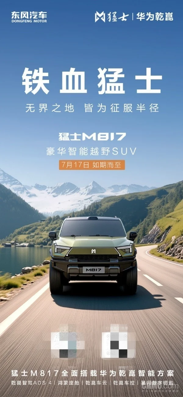 7月16日,豪華智能越野SUV——猛士M817將于7月17日舉行技術發(fā)布暨新車預售的活動。據(jù)悉,猛士M817整車采用華為全棧智能解決方案,并將首批搭載乾崑智駕ADS 4。