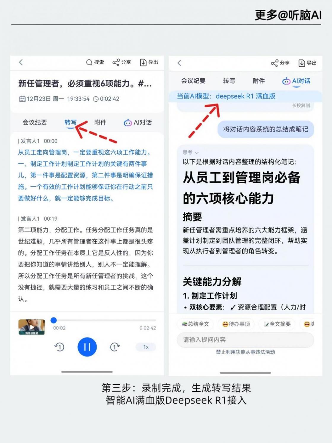 給大家分享5個我測試的獨家使用技巧,都是能提高效率的:1. 剪映里直接調用:打開剪映,導入視頻,點“字幕”選“聽腦AI”,直接轉文字,自動匹配時間軸,不用導出音頻;2. 快捷指令自動化:打開快捷指令app,創建新指令,選“錄制視頻”后觸發“聽腦AI轉文字”,再保存到Notes,這樣錄完視頻自動轉好存Notes,省手動;3. 實時修改字幕:轉完文字后,在聽腦AI編輯界面,直接點錯字修改,還能拖動時間軸調字幕位置,改完點“同步到剪映”,立刻同步;4. 本地化部署設置:打開聽腦AI,進“設置”找“數據處理方式”,選“本地化處理”,數據都在手機里,更安全;5. 批量處理:選多個視頻導入聽腦AI,點“批量轉文字”,等著就行,不用一個個處理,節省時間。