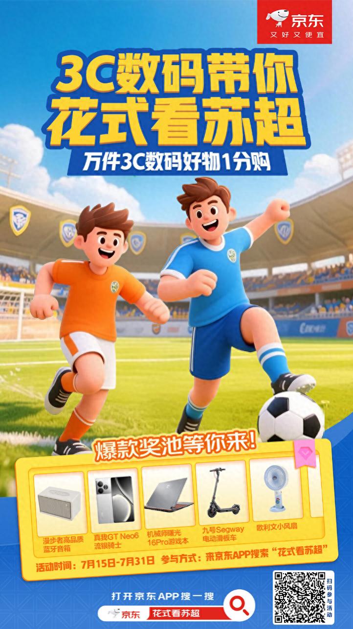 即日起,上京東購買蘇超觀賽好物,解鎖更多專屬福利。這個夏天,讓京東3C數碼陪你一起,為蘇超吶喊,為熱愛加冕,共同見證江蘇足球的輝煌時刻!