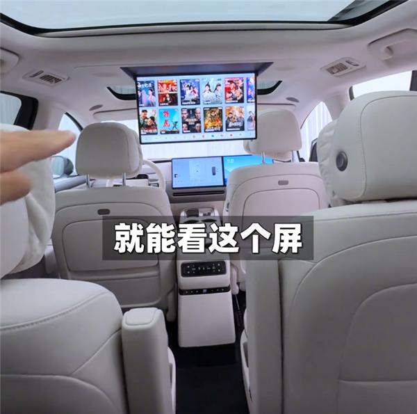 后排提供的吸頂娛樂屏,雖然材質換成了LCD,但尺寸同步增大,搭配下壓式的車頂,三排乘客觀看體驗接近平視,感覺更佳。中島臺下方為冰箱,不過依然不支持0℃以下制冷。