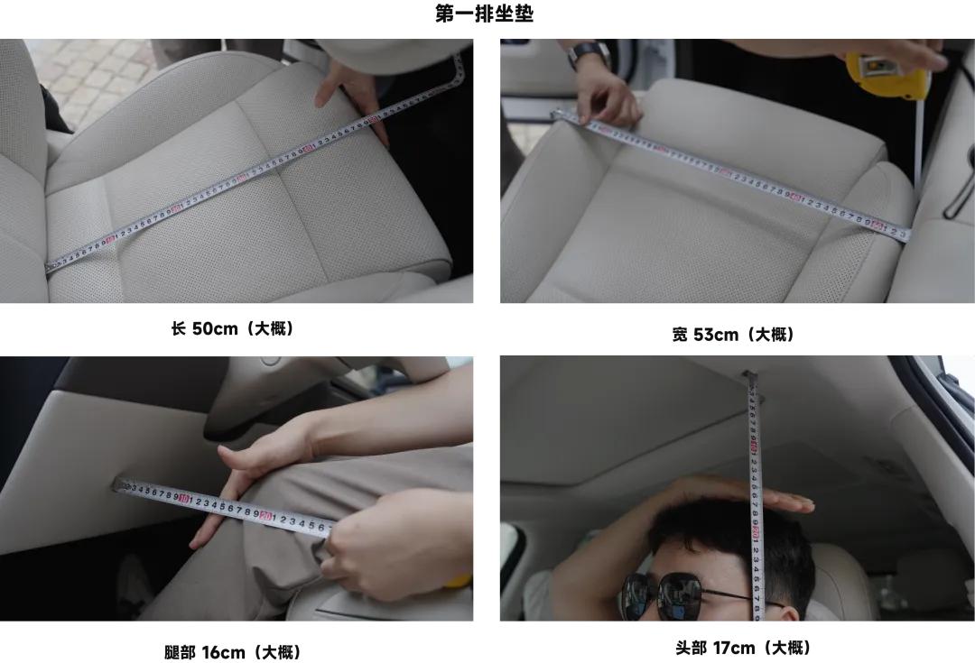 第一排的坐墊長(zhǎng)度約50厘米,寬度達(dá)53厘米,屬于主流水平但座椅足夠?qū)挻蟆R允孢m的坐姿測(cè)量,腿部空間約16厘米,頭部空間約17厘米,整體非常寬裕。