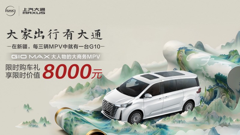 新疆每三輛MPV就有一臺大通MAXUS G10,市場信賴度極高,目前,上汽大通G10 MAX大人物大商務(wù)MPV,超大空間與高端科技齊備,限時購車贈8000元豪禮,對于有采購計劃的企業(yè)來說,現(xiàn)在下手正是時候。