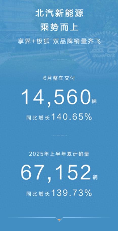 作為上半年收官之戰(zhàn),6月份的銷量表現(xiàn)值得格外關注。6月份,北汽新能源實現(xiàn)銷量14560輛,除了極狐品牌持續(xù)以破萬之勢穩(wěn)態(tài)增長之外,交付逐漸進入爬坡期的享界也以月交付4154臺的成績,為北汽新能源的上半年增添了一抹亮色。